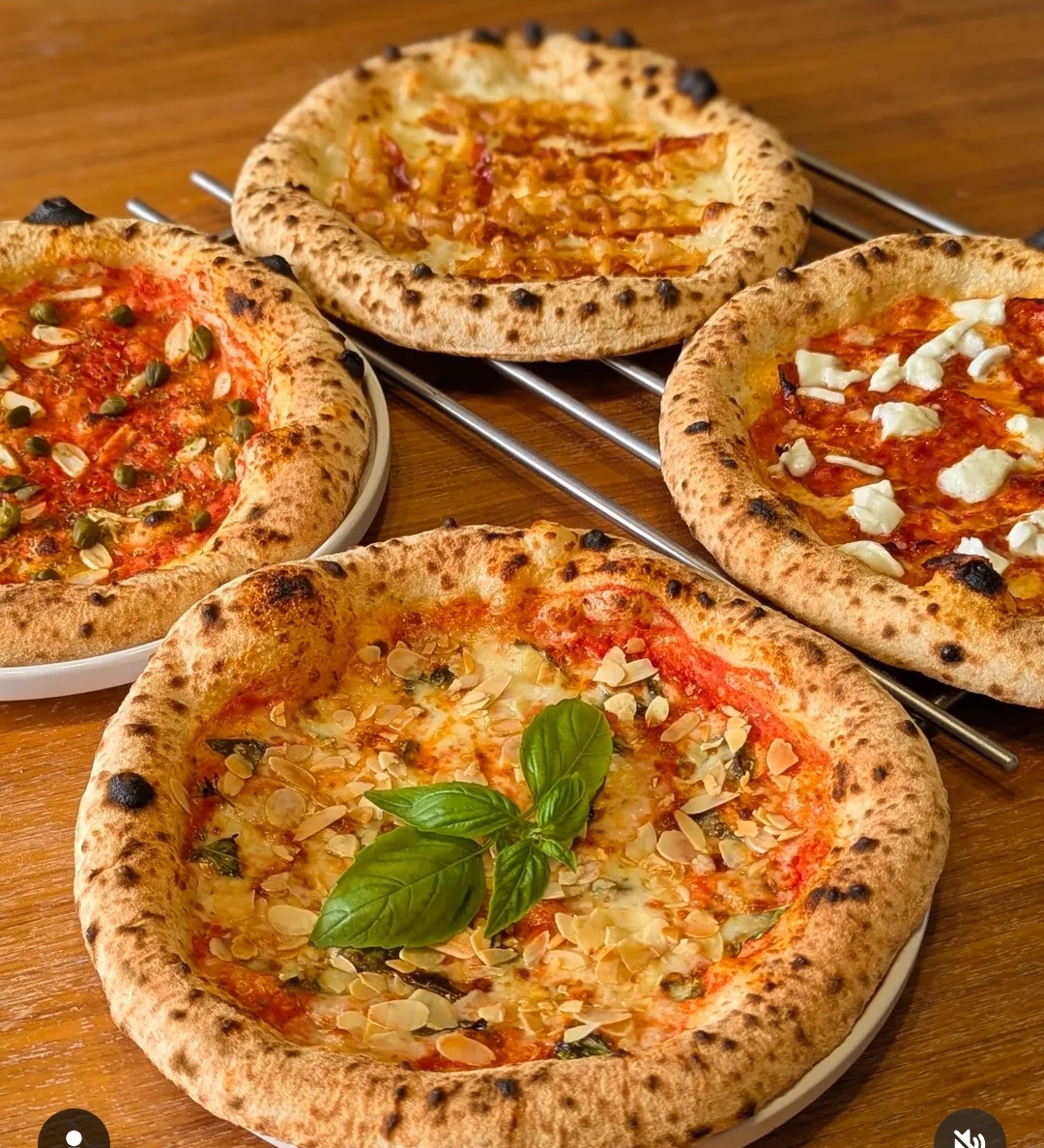 Mr. Milliat assures that his signature preparation brightens your summer days. The never-seen-anywhere pizza has a smooth pea cream as a base, lifted by lemon and fresh mint. After baking, silky fior di latte mozzarella melts in, while al dente peas bring a crunchy freshness. Lemon zest brightens every bite like sunshine on the palate. Even the very sight of such a pizza with contrasting colours matches its succulent taste.
